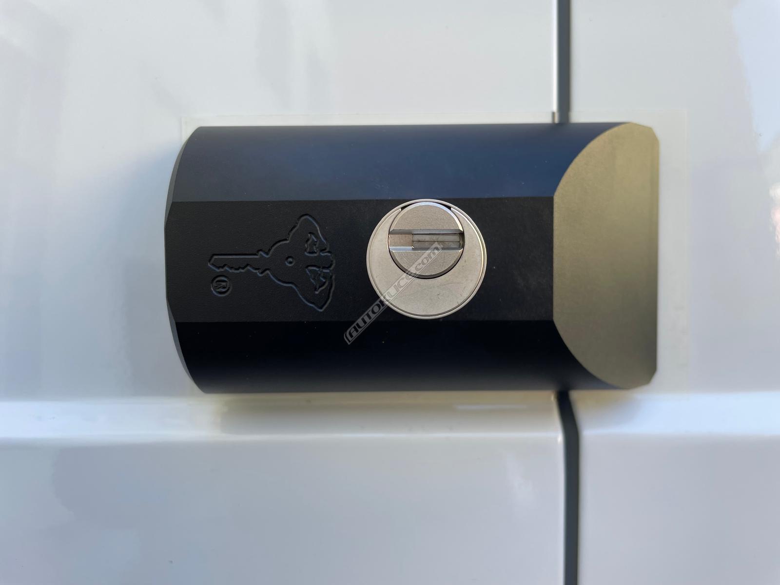 Zámek je navržen pro snadnou instalaci — pomocí šablony, kterou nalepíte, je montáž rychlá a funguje i jako ochrana proti poškrábání karoserie.